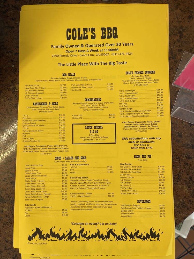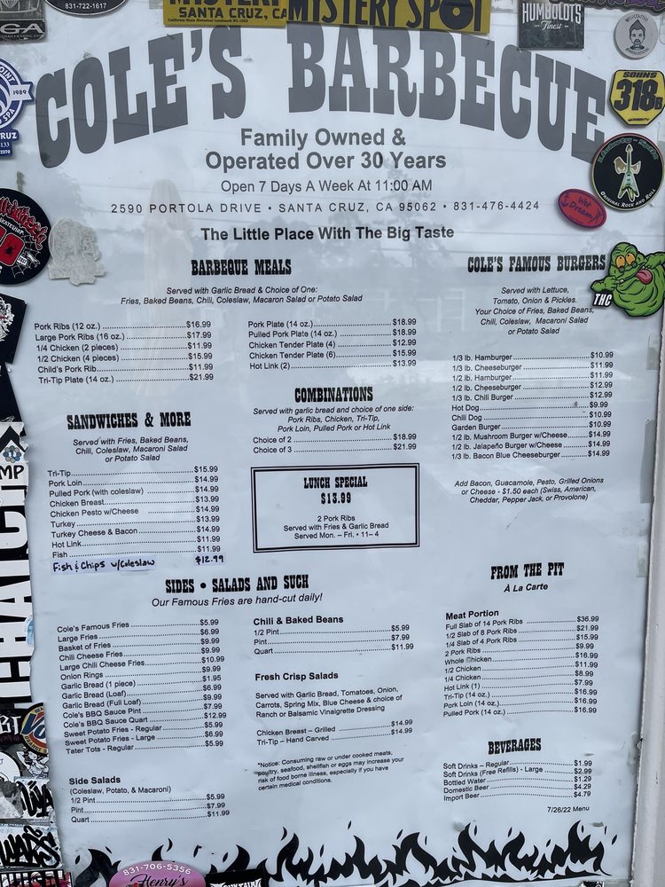 Cole’s BBQ & Catering is a popular barbeque spot in Santa Cruz, CA that offers a wide range of options for meat lovers and vegetarians alike. With options for delivery, takeout, and catering, Cole’s ensures that their delicious food is accessible to all. Customers rave about the flavorful tritip, pulled pork, and mushroom burgers, as well as the generous portions and fresh ingredients. The laid-back atmosphere, friendly staff, and efficient service make dining at Cole’s a delightful experience. Whether you’re craving classic BBQ flavors or looking to try something new, Cole’s BBQ & Catering is a must-visit for a satisfying and enjoyable dining experience.